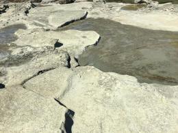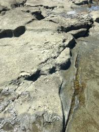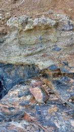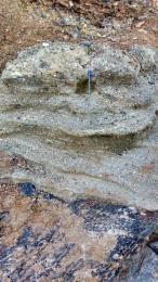 Al norte del punto, en el acantilado se observa un perfil prácticamente perpendicular al rumbo de la discordancia K-T (Fig. 11), además de la mayor variación litología.