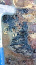 El punto de interés corresponde a una playa de ancho promedio de 21 m y una extensión de a lo menos 219 m. Delimitada al oeste por el mar y hacia el este por un acantilado costero de a lo menos 38 m; en este aflora la Fm Quiriquina (Maastrichtiano) que subyace en discontinuidad erosiva a la Fm Curanilahue (Eoceno), el rumbo y manteo de la discontinuidad es N30°W/10°NW. El punto continuada al Sur como un tramo de playa de un ancho máximo de 3.5 m y extensión de 249m aproximadamente; en el cual abundan rodados de areniscas grises de la Fm Quiriquina con fósiles de Baculites sp., Cardium sp., Bivalvos no identificados además de trazas fósiles de Ophiomorphas, Thalassinoides y Teredolites, indicando también existían rodados de la Fm Curanilahue con improntas de hojas.
